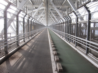実はこの橋すごく高い所にかかっている為、この橋の出入り口周辺は凄い坂道になっています